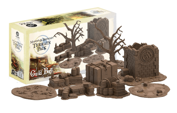 Une terrain réglementaire de Guild Ball doit contenir quelques obstacles, couverts et terrain de zone. Vous propose récupérer gratuitement les fichiers STL du set Terrains des Maçons & Brasseurs dans le pack de démarrage offert par Steamforged Games.