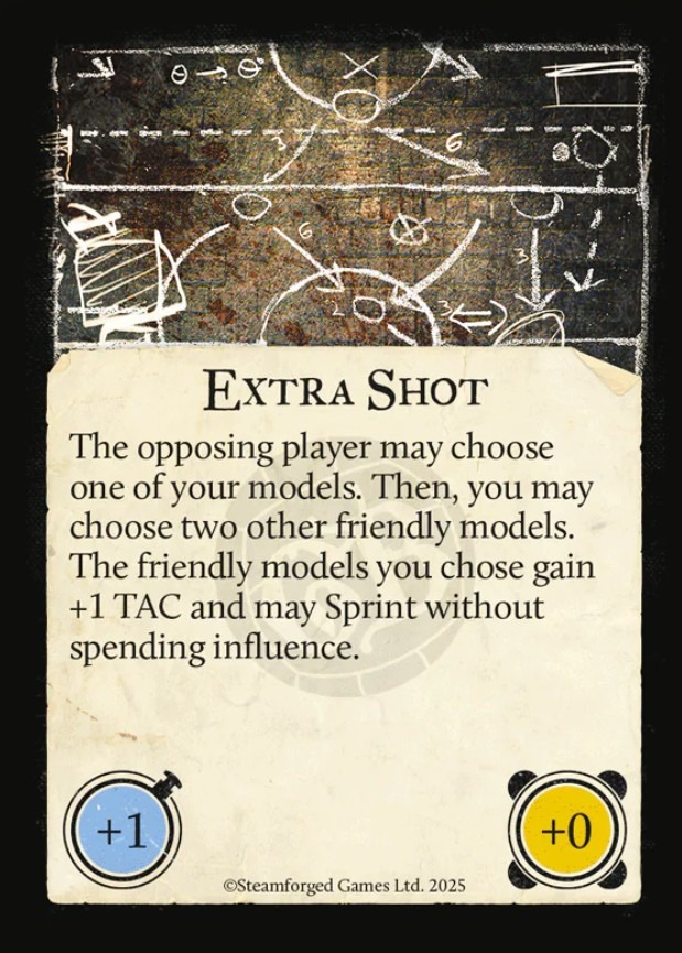 Un joueur qui n’a reçu aucun point d’influence peut malgré tout effctuer l’action Courir. Elle est gratuite. Ce déplacement vous permet de repositionner les figurines là où elle vous seront le plus utile, sans que cela pèse sur les actions du reste de l’équipe.