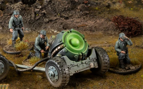 Vous pouvez donc recycler vos sections de GI ou de grenadiers telles quelles, mais c’est aussi l’occasion de s’adonner au plaisir favori des modélistes : le kitbashing. Un bras bionique par-ci, une tête avec masque à gaz par-là, et vos troupes classiques gagnent instantanément ce look « Weird War » si particulier.