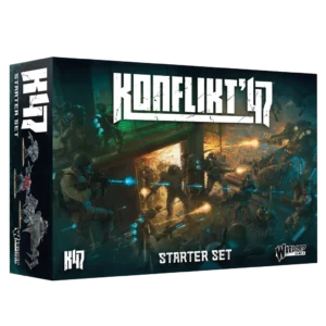 - Le Konflikt ’47 Starter Set qui propose quant à lui un contenu plus complet ainsi que le livre de règles.